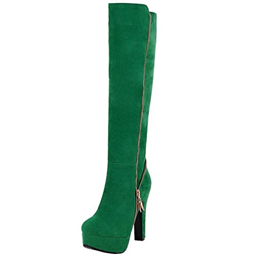 LOVOUO Donna Stivali al Ginocchio con Plateau Alti Tacco a Blocco Cerniera (44 EU, Verde)