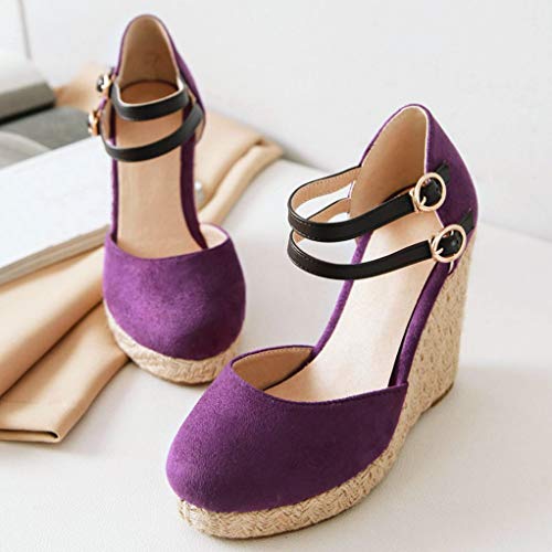 LOVOUO Espadrillas Chiuse Zeppa Mary Jane Decolte Donna con Cinturino alla Caviglia Fibbia Platform High Heels Pumps Wedge Sandals (39 EU, Viola)