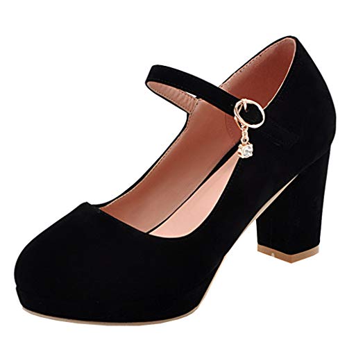 LOVOUO Mary Jane Tacco Alto Decolte Donna con Tacco Blocco Cinturino alla Caviglia Fibbia Punta Tonda (34 EU, Nero)