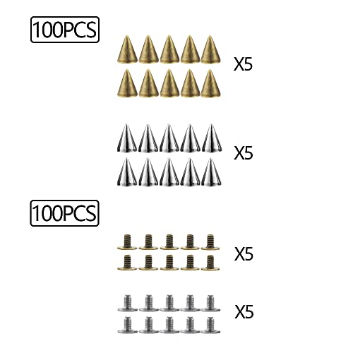 Lowats Borchie a Vite 100 Pezzi Borchie a Cono Cono Rivetti Punk Borchie Rivetti Borchie Abbigliamento Borchie Vite Borchie Filettate a Forma di Cono Punk Vite Conica Conico Rivet