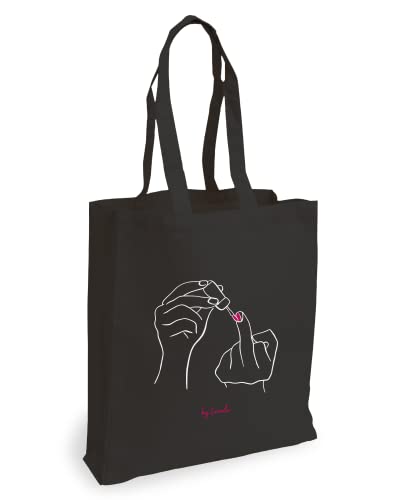 Nuova borsa in tessuto nera di Loxato - I nostri disegni più popolari sono disponibili su tote bag nera su vostra richiesta. Anche i nuovi design sono disponibili solo in nero