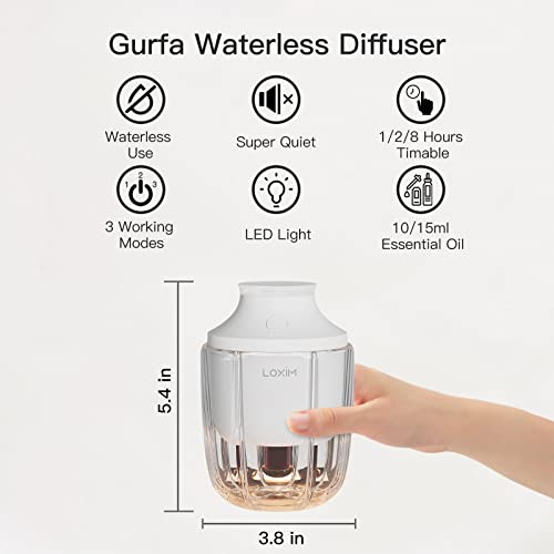 LOXIM Gurfa Diffusori di oli essenziali senza acqua con tecnologia nebulizzante per grandi stanze, casa, auto, ufficio, portatile, senza fili, super silenzioso, embient light a batteria, diffusore di