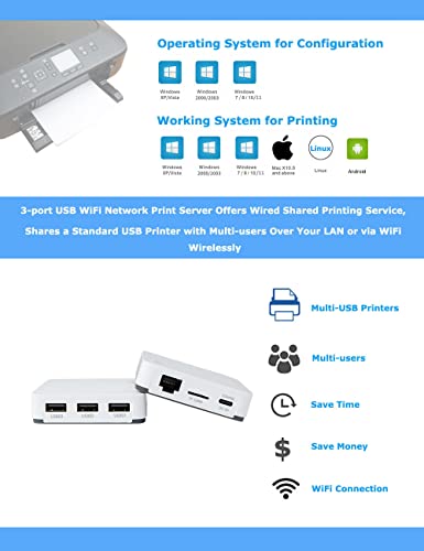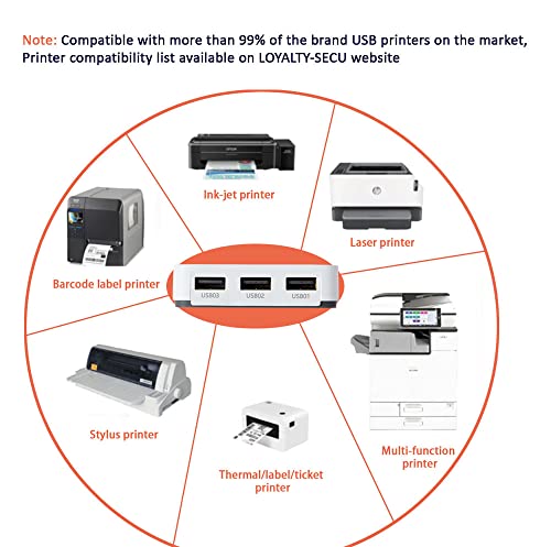 LOYALTY-SECU Server di Stampa a 3 Porte RJ45 trasforma la Stampante USB in modalità di Rete in pochi Secondi (RJ45+WiFi)