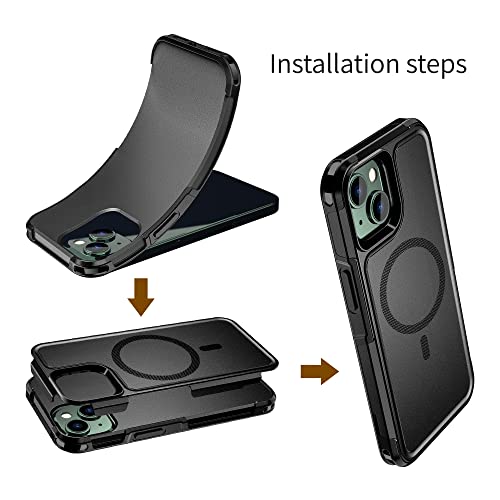 Loyhee Cover Magnetica per iphone 14, Compatibile con Magsafe, Custodia Protezione Antiurto Antiscivolo di Livello Militare TPU Morbido Interno + PC Anti-Graffio Retro Case - Nero