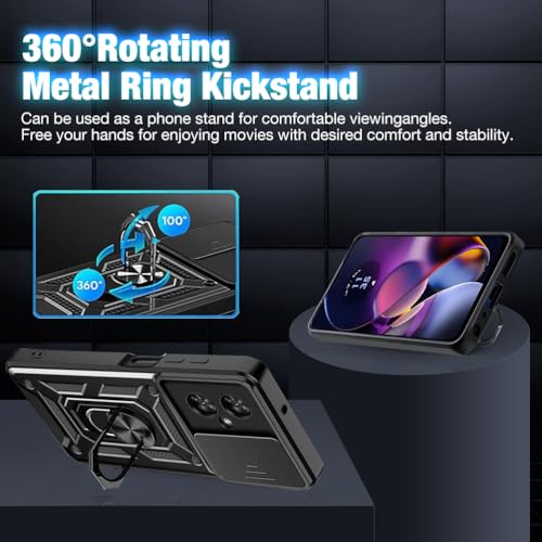 Loyhee Cover per Motorola Moto G54 5G (6.5"), Custodia con Scorrevole Fotocamera Proteggi Supporto di Anello Rotante Hard PC Back Cover e TPU Bumper AntiGraffio Antiurto Case - Nero