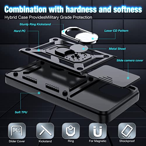 Loyhee Cover per Realme Narzo 50i Prime/Realme C30, Custodia con Scorrevole Fotocamera Proteggi Supporto di Anello Rotante Hard PC Back Cover e TPU Bumper AntiGraffio Antiurto Case - Nero