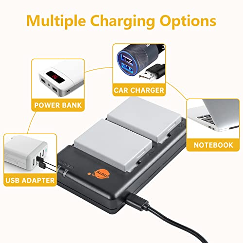 LP-E8 LC-E8E (2 pezzi) Batteria di ricambio ricaricabile e doppio caricatore compatibile con Canon EOS Rebel T2i, T3i, T4i, T5i, EOS 550D, 600D, 650D, 700D, Kiss X4, X5, X6 ecc.