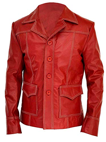 LP-FACON Brad Pitt Fight Club Tyler Durden Mayhem Giacca in pelle rossa Rosso XS