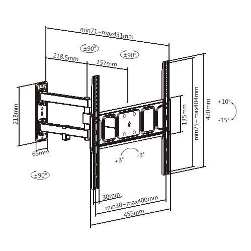 Distanza massima TV/parete: 431 mm