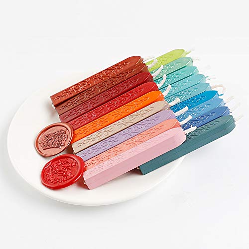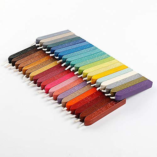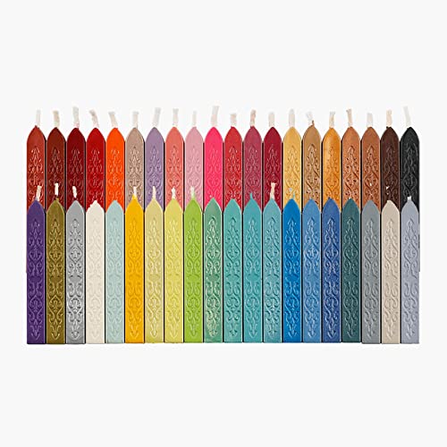 LPing 40 Pezzi Bastoncini di ceralacca con stoppino per Sigillo di Cera Timbro Antico Fuoco manoscritto francobolli Lettere,40 Colori,11x90mm