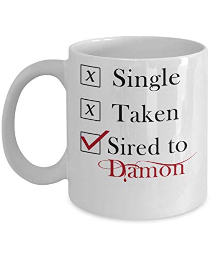 Lplpol - Tazza da tè con scritta “Sired to Damon The Vampire Diaries”, colore bianco, 311,8 g, The Vampire Diaries Tv Show Ristorante, accessori per camicia, poster adesivo per lavori artistici