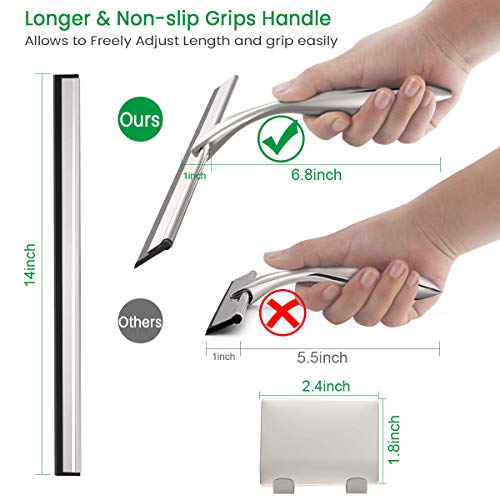 Lpoler, lavavetri per doccia, in acciaio inox, con gancio autoadesivo, lavavetri multiuso per bagno, specchi, finestre, auto, vetro, 35,6 cm