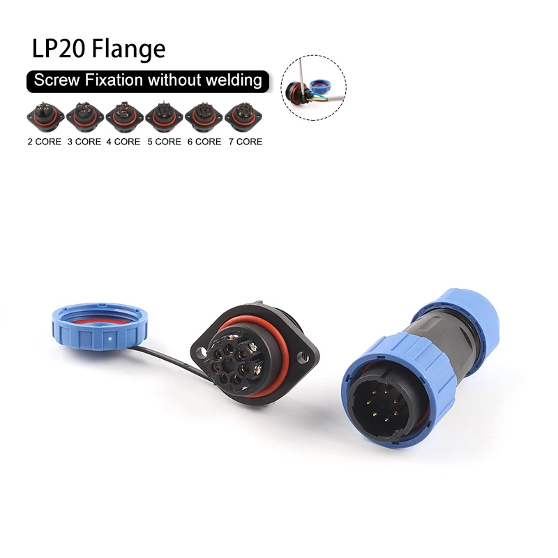LP/SP20 IP68 No welding screw connectionFlange type waterproof aviation plug IP68 2/3/4/5/6/7 pin male/female plug socket