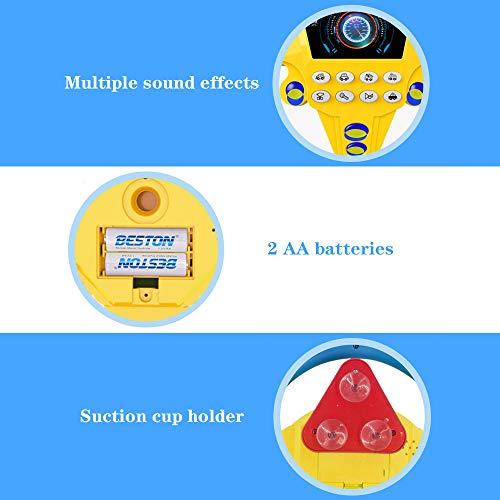 【Facile da Riparare】 - Ci sono 3 ventose sulla base triangolare sul retro del volante, che possono essere fissate su una superficie liscia e poi i bambini e girarlo come un vero volante.