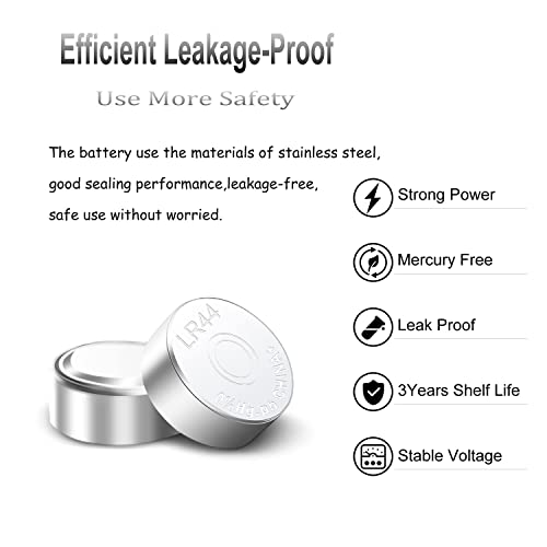LR44 - Pila a bottone LR 44, batteria AG13 (64 pezzi) senza mercurio, 1,5 V, 357/357 A/L1154/A76/GPA76