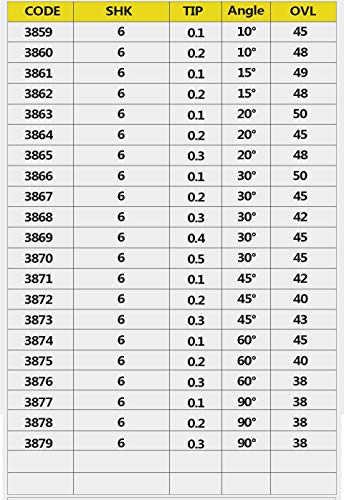 LSB-Tools, 1pcs 6 Millimetri Engraving Bits rettifica di precisione Forma V Carbide PCB Fresa CNC Router Bit Machine Accessories (Taglia: 3865)
