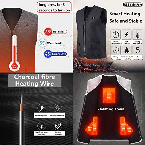 LSCC Elettrico Riscaldato la Maglia per Donne Degli Uomini, Unisex Esterno Di Inverno Riscaldamento Vest Usb Cappotto Ricaricabile Calore Gilet Elettrico Warmer Corpo con 3 Temperatura per Moto Cacci