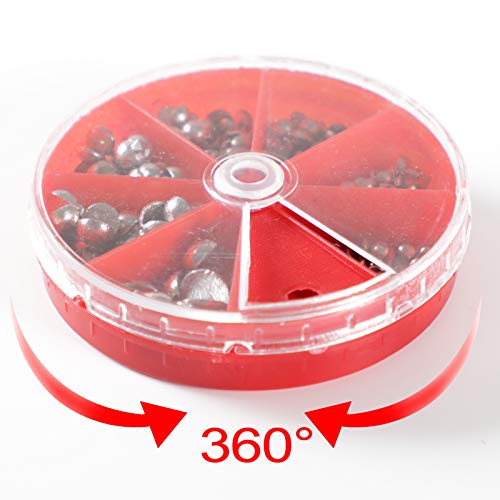 Imballo: Il piombo da pesca è confezionato in una scatola rotonda, facile da trasportare e riporre, e l'abbinamento di pesi diversi può soddisfare le vostre esigenze.