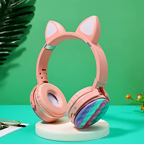 LSFYSZD Fidget Cuffie per bambini, cuffie Bluetooth senza fili, cuffie pop bolla sull'orecchio Fidget Toy Rainbow Color Fidget Headset per bambini adulti (rosa, taglia unica)