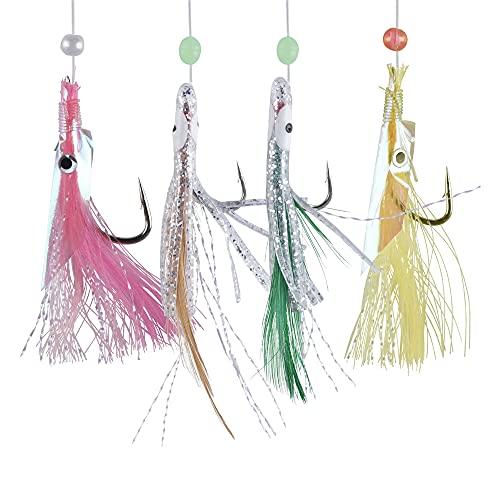 LSHEL Set di 22 Confezione Lenza da Pesca in Mare Esche Piumate da Pesca