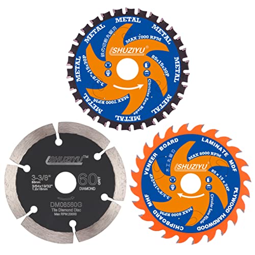 LSHUZIYU 85mm, Pietra. Legna. Lama Per Sega Circolare Per Taglio Di Metalli, Set Da 3 Pezzi, Foro Centrale 9.5mm, Accessori Per Sega a Batteria