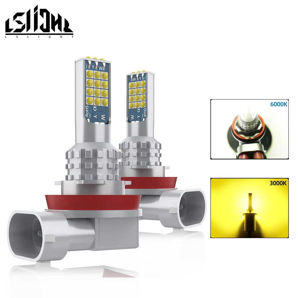 LSlight Universal LED Fog Light Yellow H3 H11 H9 H8 Auto Driving Lamp 3000K/6000K White Replacement Bulbs 3030SMD for 12V Cars