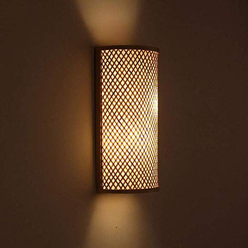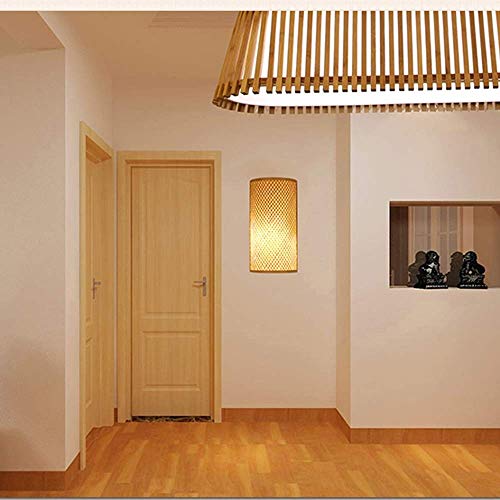 LSLVKEN Bamboo Wicker Rattan Applique Applique Rustico Luce Camera da Letto Comodino Corridoio 2 Luci E27 Edison Applique Apparecchio Riparo della Parete Lanterna Decorazione