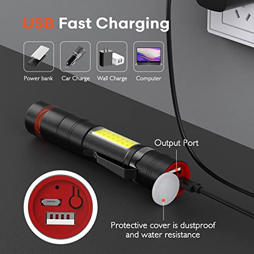 Lsnisni Mini LED Torcia 2pcs, 2000 Lumens Piccola Torce USB Ricaricabile, Clip in Acciaio, COB, Zoombile e 5 Modalità, Portatile e IPX5 Impermeabile per il Campeggio, Escursioni e Riparazioni