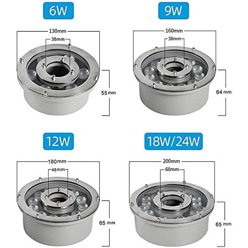 LSSHQ Luce della fontana dell'anello del LED, Faretto sommergibile per paesaggi subacquei Foro medio 12V/24V IP68 per piscina con fontana da giardino (Colore: Blu, Misurare: 6W(24V))