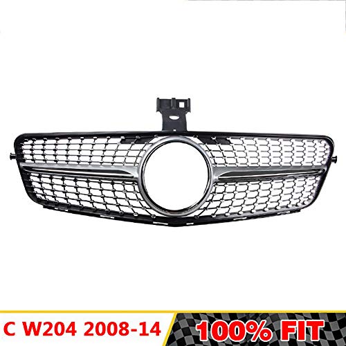 LSYBB ABS Griglia Anteriore Adatto per Mercedes Classe C W204 Griglia Diamantata C180 C200 C300 C250 C350 2008-2014 Senza Emblema,Black