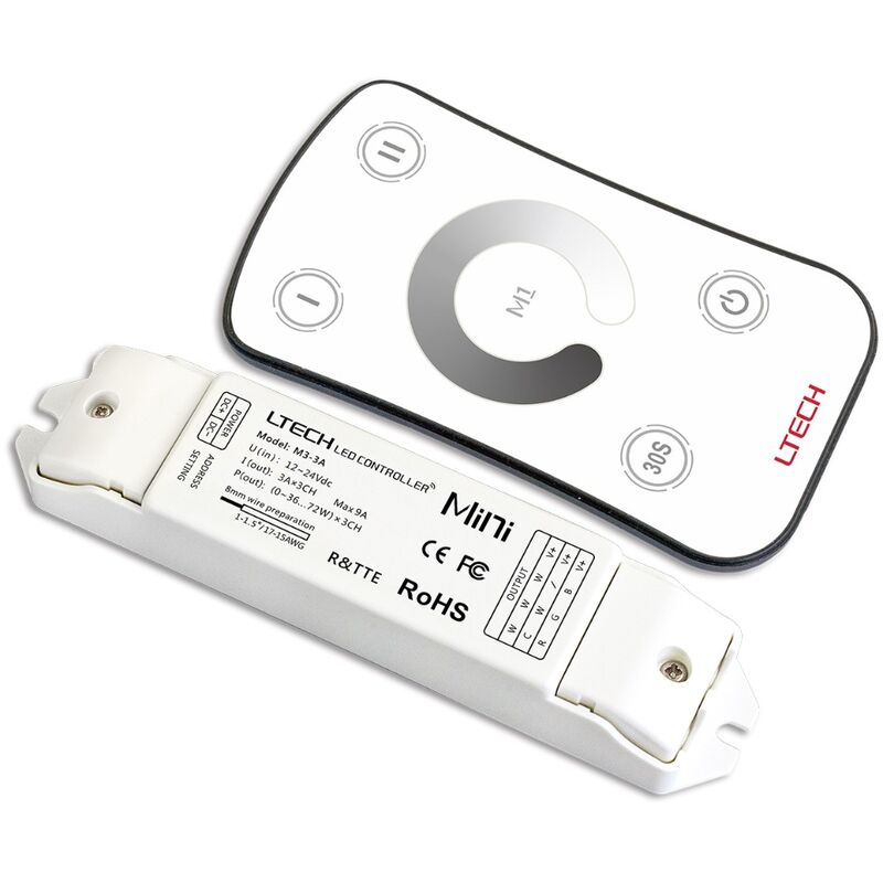 Vantaggi: Regola facilmente la luce delle strisce LED Installazione del controller e del telecomando Regola facilmente la luce delle strisce LED Le strisce LED dimmerabili possono essere regolate con questo telecomando LTECH RF. Assicurativi, però, di avere una striscia LED dimmerabile. Su Lampadadiretta si può trovare questa informazione nelle specifiche di ogni prodotto. Con questo telecomando non solo potrai accendere e spegnere la luce, ma potrai anche regolarne l'intensità, senza neanche dover puntare il telecomando verso la LED strip. Comodo, vero? Installazione del controller e del telecomando Per installare una striscia LED standard serve un driver LED per farla funzionare ma, per poter regolare la luce di una striscia dimmerabile, serve anche un controller. Questo deve essere installato tra il driver e la striscia LED. Controller e cavo DC sono inclusi nella confezione.