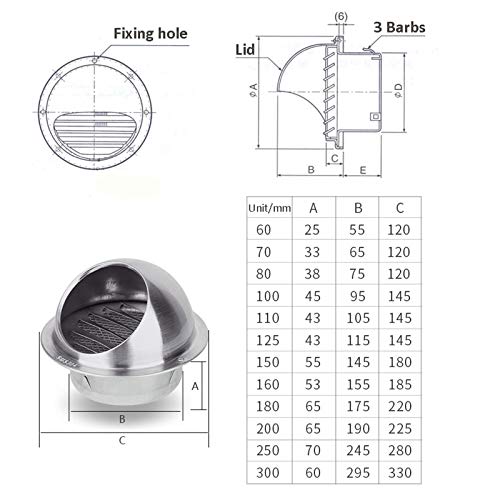 Adatto per tubi: questo coperchio di ventilazione incontra i fori del camino con un diametro di 60 ~ 300 mm (opzionale) per applicazioni. Ventilatore di scarico ventilatore per lo scarico della parete esterna, aria fresca, cappa di scarico, decorato con gli Stati Uniti e altri usi decorativi.