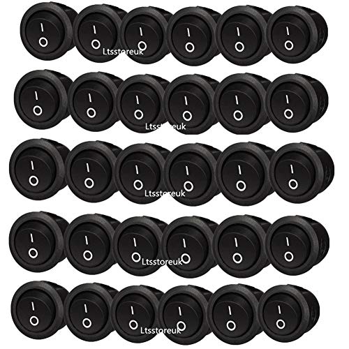 Ltsstoreuk Interruttore a bilanciere on/off a 2 posizioni Mini Boat Switch rotondo 10A/125V, 2 pin 6A/250V SPST Interruttore a levetta per auto elettrodomestici, nero, confezione da 25 (nero)