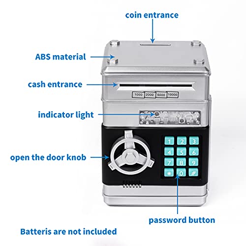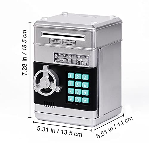 Ltteaoy Cassaforte per Bambino, elettrico Salvadanaio con password grande Salvadanaio elettronico per bambini 3-12 Anni, Mini cassaforte per banconote Moneta Regali per Natale e compleanno (Argento)