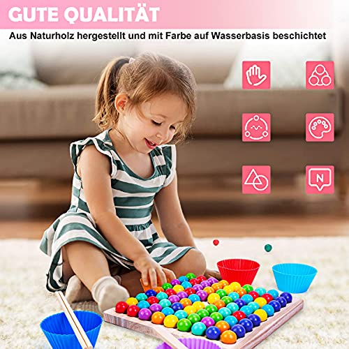 Ltteaoy Montessori Giocattoli in Legno Perline Gioco con Clip, Educazione Precoce Bacchette Perline Puzzle per Allenare Mani e Cervello, Giocattolo Educativo Regalo per Bambini Bambina 3+ Anni
