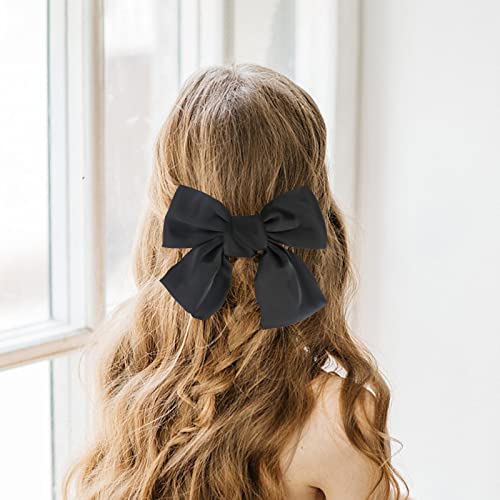 LTTJAY Mollette Per Capelli Donna Con Fiocco In Raso Nero Fermagli Capelli Donna Ferma Capelli per Ragazza con Chiusura Clip Fermaglio (Nero)