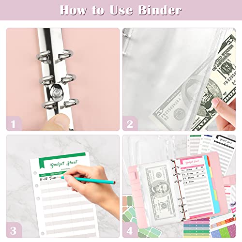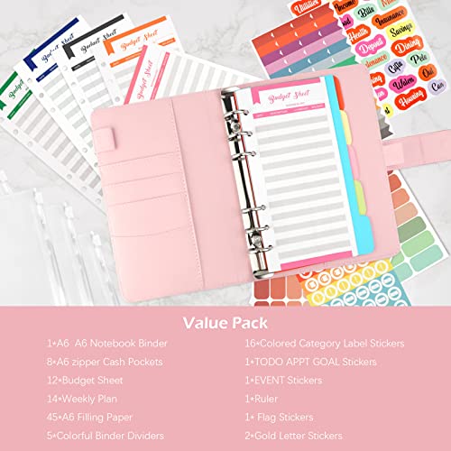 LTZGO Raccoglitore ad 6 Anelli, Budget Binder con 40Pezzi, per Bilancio e 8 Buste Trasparenti Rimovibile, Laser in Pelle PU A6 per pianificatore finanziario 84PCS (Rosa)