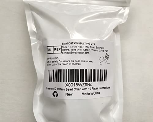 Luanxu catena tenda a rullo 10 metri con connettori catena da 10 pezzi, catena palline per tenda, verticali, veneziane, corda tenda parti di ricambio per tende a rullo Raccordi di riparazione