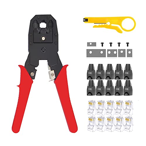 LUBEIN RJ45 Set di utensili di crimpatura, CAT5 CAT6 Ethernet Crimper Network Crimp Tool Kit Wire Ethernet Lan Stripper Cutter Punch Down Tool Connettore RJ45 (forma S-CAT)