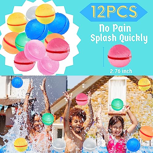Lubibi Palloncini Acqua Riutilizzabili,12 Pezzi Palloncini D'acqua in Silicone, Palloncini D'acqua Autosigillanti a Riempimento Rapido Per Bambini e Adulti, Combo Colorato Estivo Per Feste, Spiaggia