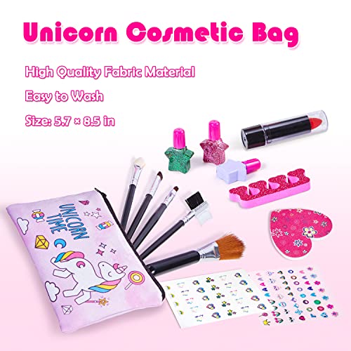 Lubibi Unicorno Set trucco per bambini 15 Pezzi Sicuro e lavabile Kit di Cosmetici Veri per Bambini con Borsa per cosmetici Regalo di Compleanno di Natale Giocattolo per Ragazze età 456789