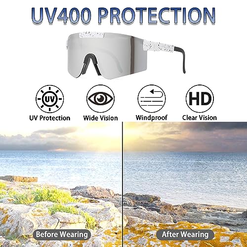 Occhiali Sportivi Polarizzati - Le lenti degli occhiali da sole sportivi sono realizzate con lenti polarizzate di alta qualità con buona trasparenza e alta definizione.La pellicola protettiva 100% UV400 può bloccare i dannosi raggi UVA e UVB.Ha buone prestazioni di luce anti-blu, riduce l'affaticamento degli occhi e rende la scena più chiara e morbida, perfetta per l'uso quotidiano e il ciclismo.