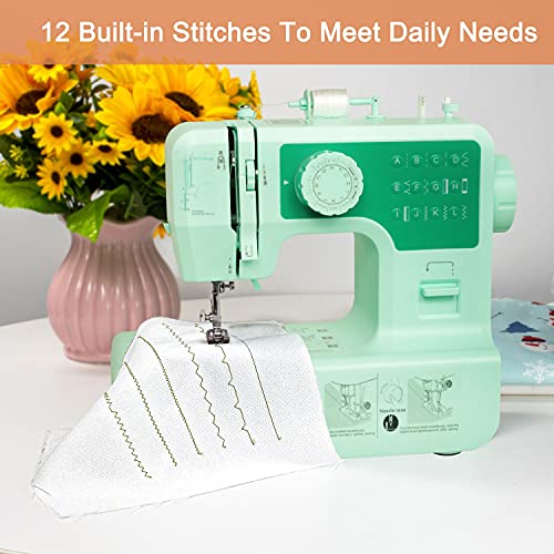 LUBY Macchina da cucire, 12 punti integrati, fai da te, Portatile, Verde