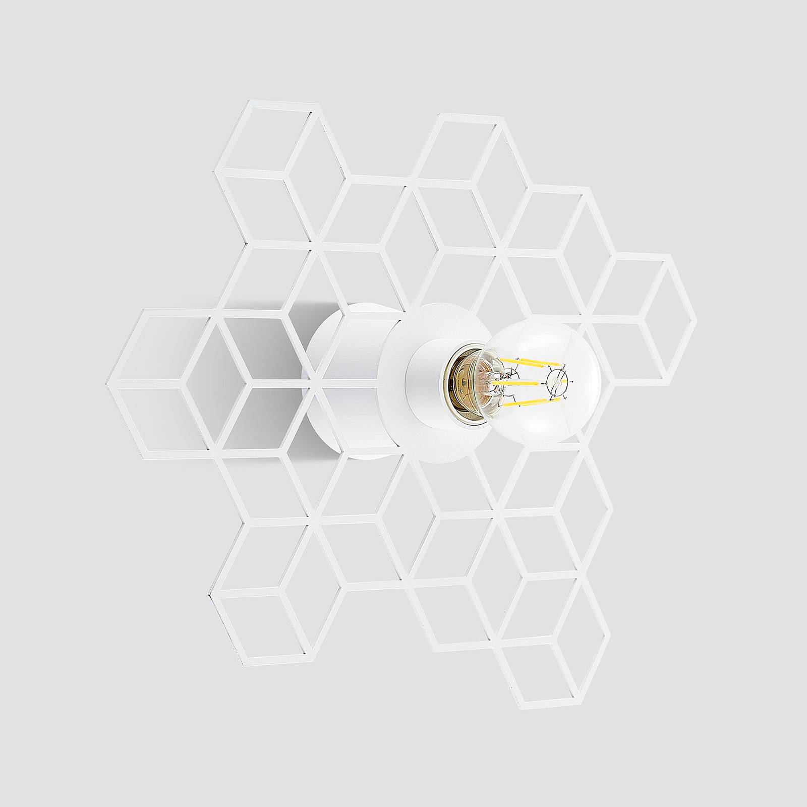 Lampada da parete di design di alta qualità Alexaru in bianco - design a nido d'ape di tendenza per un magico gioco di luce Alexaru è una lampada da parete di incomparabile bellezza con carattere oggettuale, che ha una nobile struttura a nido d'ape, che è composta da rombi o, a seconda della prospettiva, a volte assomiglia alla vista tridimensionale di un cubo, e corrisponde quindi a una tendenza molto alla moda. L'apparecchio appare molto bello quando è spento come oggetto decorativo sulla parete, ma l'effetto wow assoluto arriva esattamente quando la lampada è accesa. La graziosa ma pregiata struttura metallica con le sue omissioni crea un incantevole gioco di luce, dominato da componenti di luce e ombra ben definite, che si riflettono nella forma dell'apparecchio sulla parete retrostante. In questo modo, il look unico di Alexaru conferisce all'appartamento un'atmosfera individuale e molto lussuosa che appare nobile ed elegante. La superficie bianca opaca esercita una piacevole sobrietà e irradia una particolare armonia, che è estremamente gradita in molti salotti e oggetti moderni. Il design complessivo è splendidamente completato in particolare da una lampada con riflessione della testa, preferibilmente con un'efficiente tecnologia LED, perché in questo modo si evita completamente l'abbagliamento e il gioco di ombre ben definito viene ulteriormente valorizzato dall'illuminazione diretta del telaio della lampada. Un linguaggio di design molto bello, dove Midcentury e Loft si incontrano virtualmente! Con solo due viti e tasselli, la lampada da parete Alexaru può essere montata a parete in modo semplice e veloce, dove offrirà un piacere duraturo e diventerà una parte decorativa dell'interno.