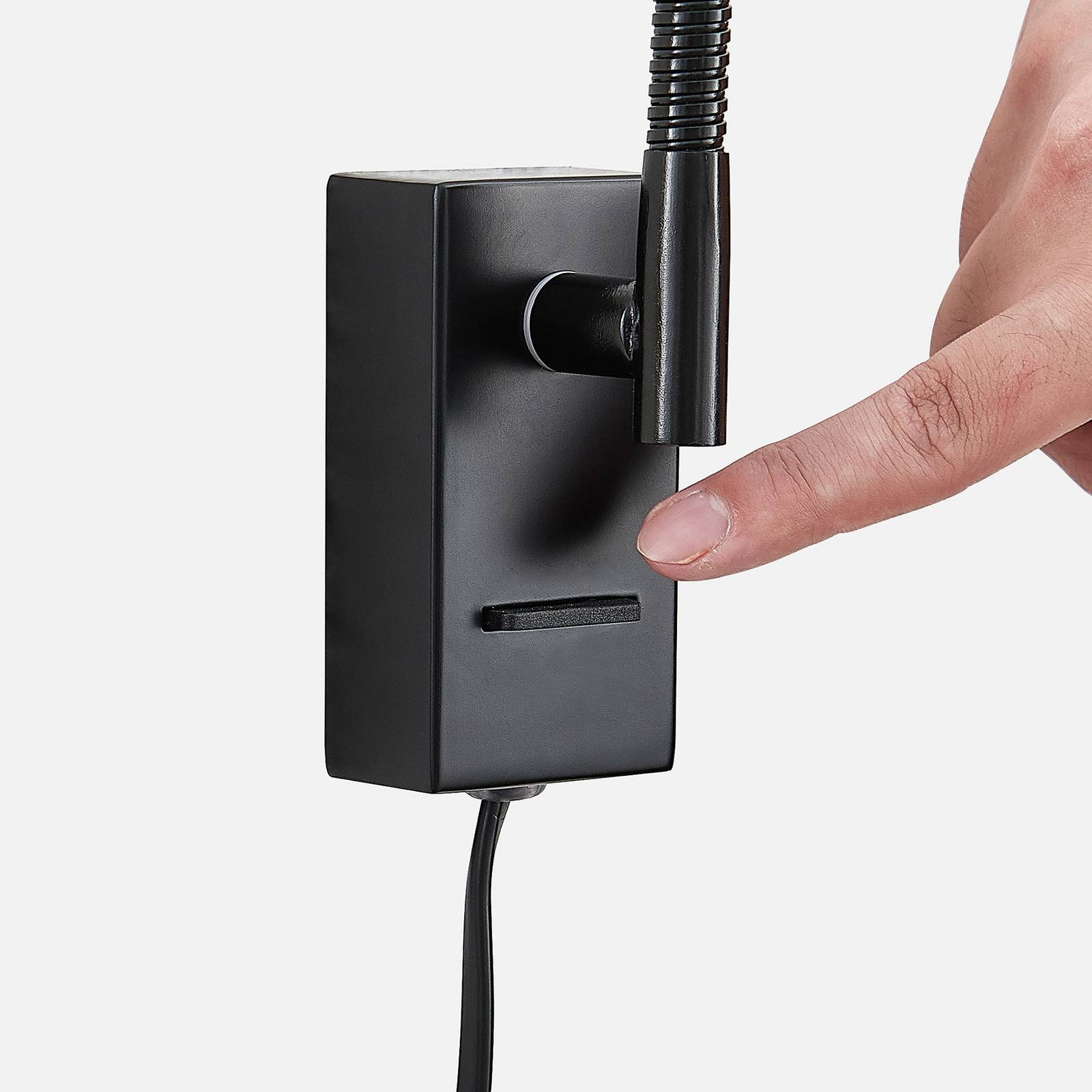 Moderna lampada da parete a LED Anaella in ferro con braccio flessibile La lampada da parete a LED Anaella convince per il suo carattere discreto e pratico. È costituito da ferro ed è tenuto in un semplice nero. Da un supporto a parete angolare si alza un braccio sottile, che termina in un paralume tubolare. I LED installati in modo permanente generano una luce bianca calda e creano così l'ambiente giusto per un soggiorno o una camera da letto. Il braccio piegabile della lampada da parete a LED Anaella permette un allineamento della sorgente luminosa in qualsiasi direzione e quindi un'illuminazione flessibile. Un interruttore sul supporto a muro facilita l'accensione e lo spegnimento della luce e permette un funzionamento semplice.