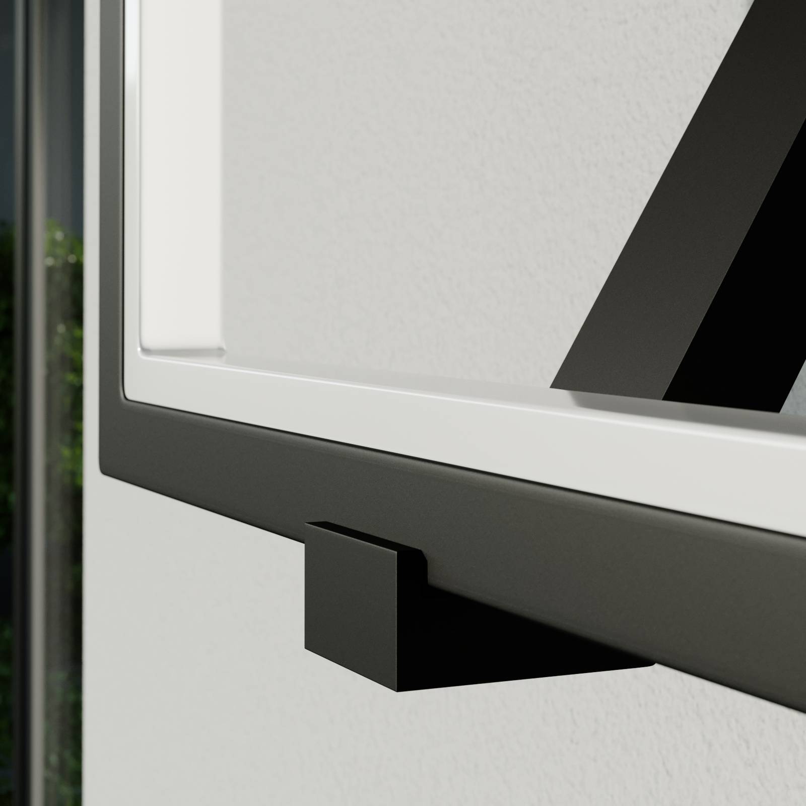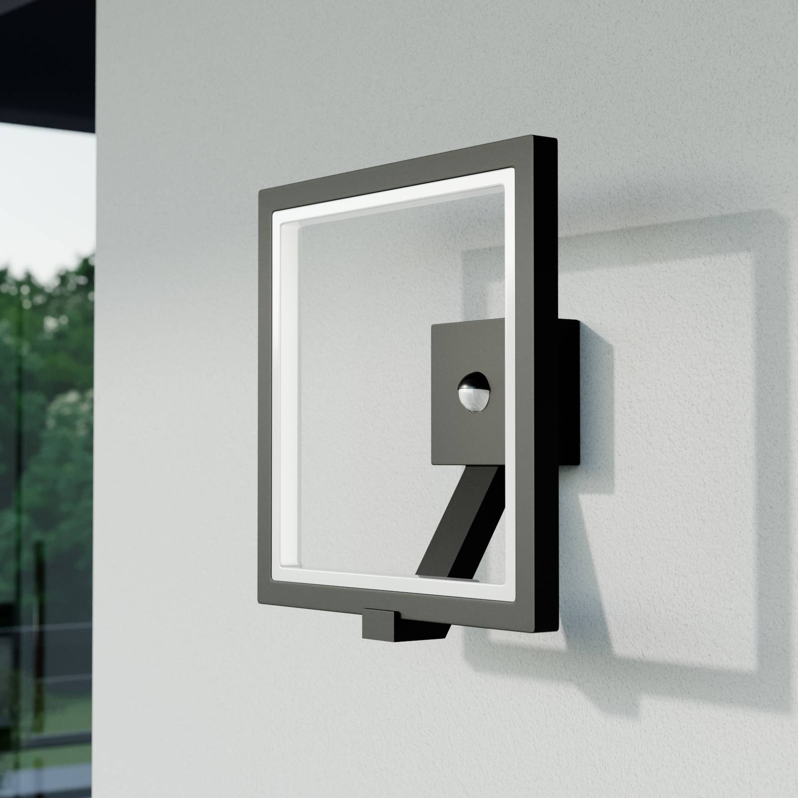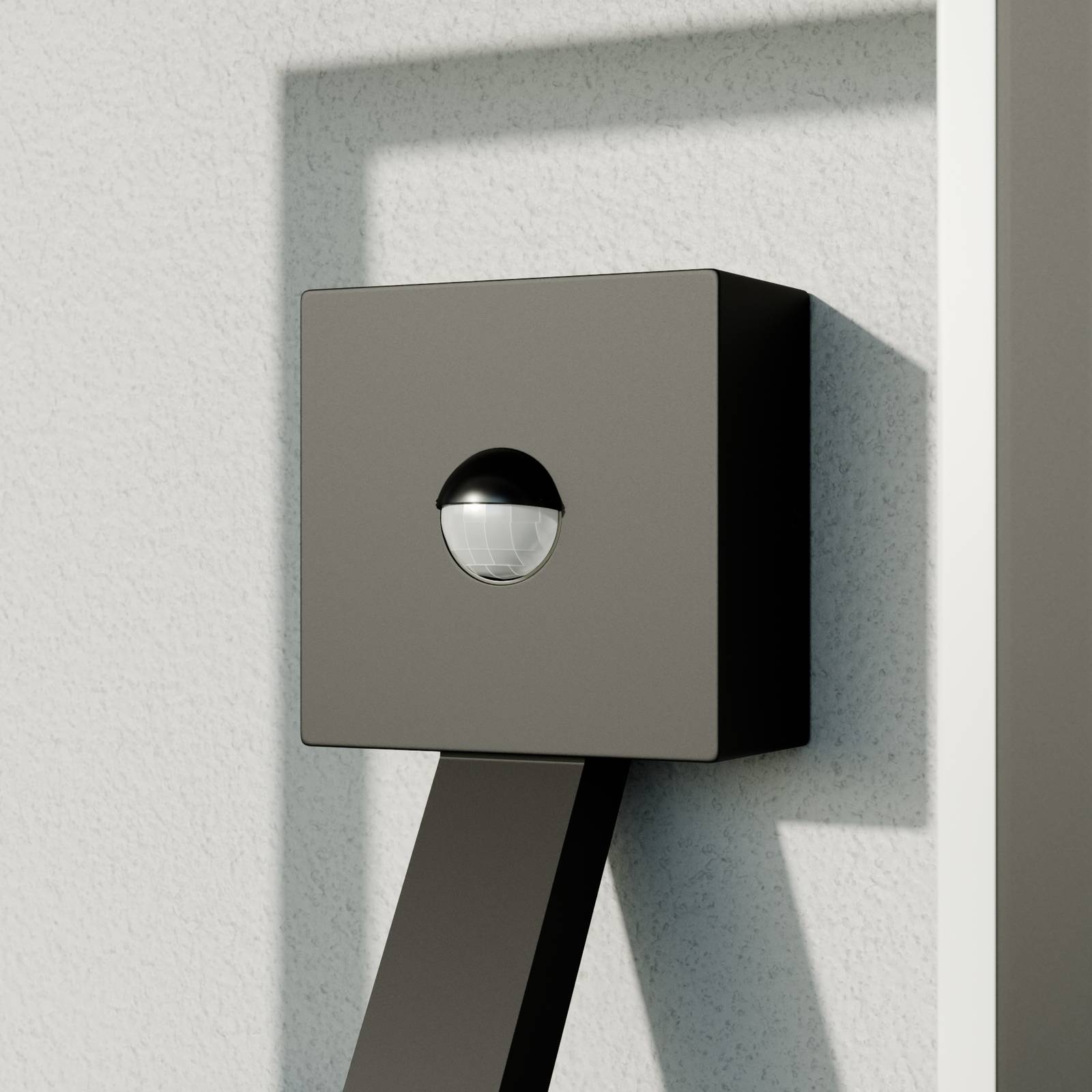 Applique da esterni LED con sensori Square a forma di cornice - premiata con diversi premi al design Square è un'applique da esterni adatta a un contesto architettonico moderno. Il corpo illuminante ha la forma di una cornice quadrata. Sul supporto a parete, visibile al centro, è installato un sensore che reagisce al movimento entro un angolo di 120°. La durata di accensione può essere regolata (da 8 s a 8 minuti) e la portata è compresa tra 6 e 10 m. I LED di questa lampada si distinguono per la potenza luminosa, la lunga durata e il consumo di corrente ridotto. L'applique da esterno è un prodotto di design molto accattivante, che ha ricevuto tre premi al design: - Red Dot Design Award (vincitore 2017) - German Design Award (Special 2018) - Good Design