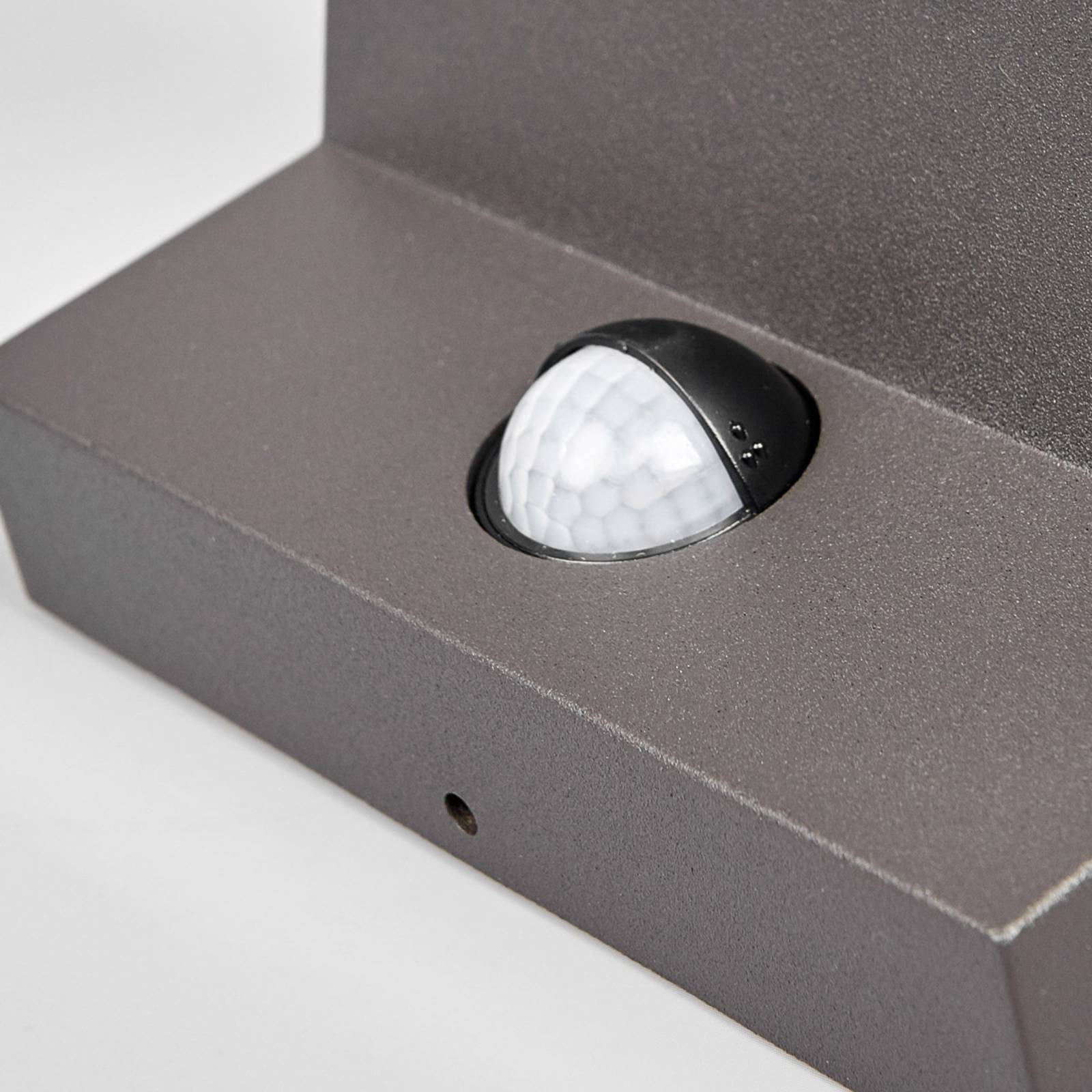 Lampada da parete Levvon, per esterni, con lampadina a LED e sensore di movimento La lampada da parete Levvon è in alluminio leggero nella tonalità grigio grafite. Il paralume bianco della lampada è in materiale sintetico. Nella parte inferiore sono alloggiate le lampadine a LED. Levvon è dotato di pratico sensore di movimento, che accende la luce, quando necessario, e grazie al dispositivo IP54, è ottimo per gli ambienti esterni. - angolo di rilevamento 120° - portata max. 9 m - durata della lampadina regolabile da 5 secondi fino a 8 minuti