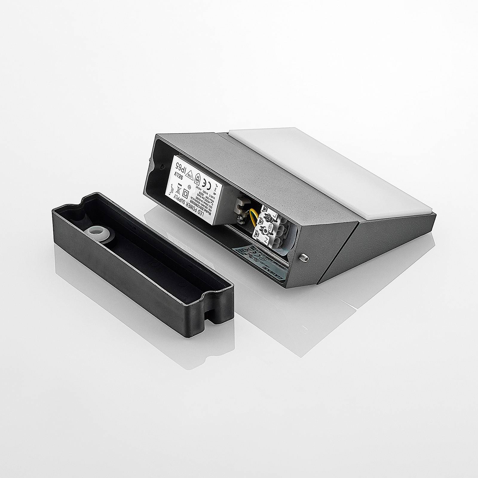 Con pannello regolabile - Lampada da parete a LED per esterni Auda Il moderno apparecchio per esterni Auda è un apparecchio da parete versatile, molto adatto ad esempio per l'ingresso di casa o per l'illuminazione dell'area del garage. La luce rivolta verso il basso è dotata di un moderno pannello a LED, che illumina l'ambiente con un colore bianco caldo, luminoso e privo di abbagliamento. Una caratteristica speciale di questa lampada da parete per esterni è la possibilità di ruotare il pannello LED di 300°, in modo che sia possibile un allineamento individuale della luce.