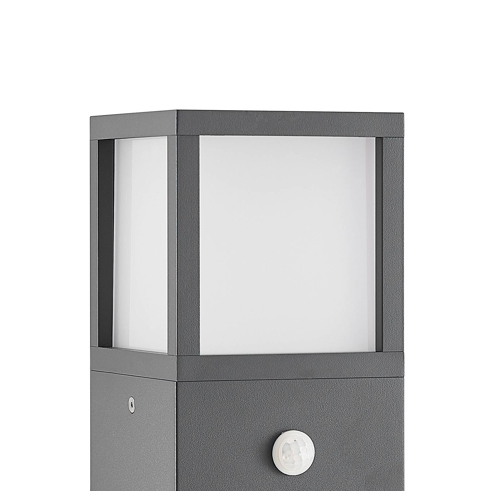 Luce di percorso Dewari in design grigio scuro dotata di un sensore L'apparecchio per percorsi Dewari colpisce per il suo alloggiamento angolare in alluminio pressofuso, che è stato rifinito con una superficie grigio scuro. Si adatta visivamente bene a diversi ambienti e ha un aspetto moderno e invitante. La copertura del paralume è in plastica e permette alla luce di irradiarsi verso l'esterno senza abbagliamento. Grazie al buon grado di protezione e alla resistenza agli urti, questo apparecchio può essere utilizzato anche all'esterno a lungo termine. Il rilevatore di movimento integrato è estremamente pratico e assicura un'illuminazione efficiente esattamente quando ne hai bisogno. Dati del sensore: - Portata fino a 8 metri (regolabile) - Angolo di rilevamento fino a 100 - Da 10 a 2.000 lux (regolabile) - Durata della luce regolabile (5 s, 30 s, 1 min, 3 min, 5 min, 8 min)