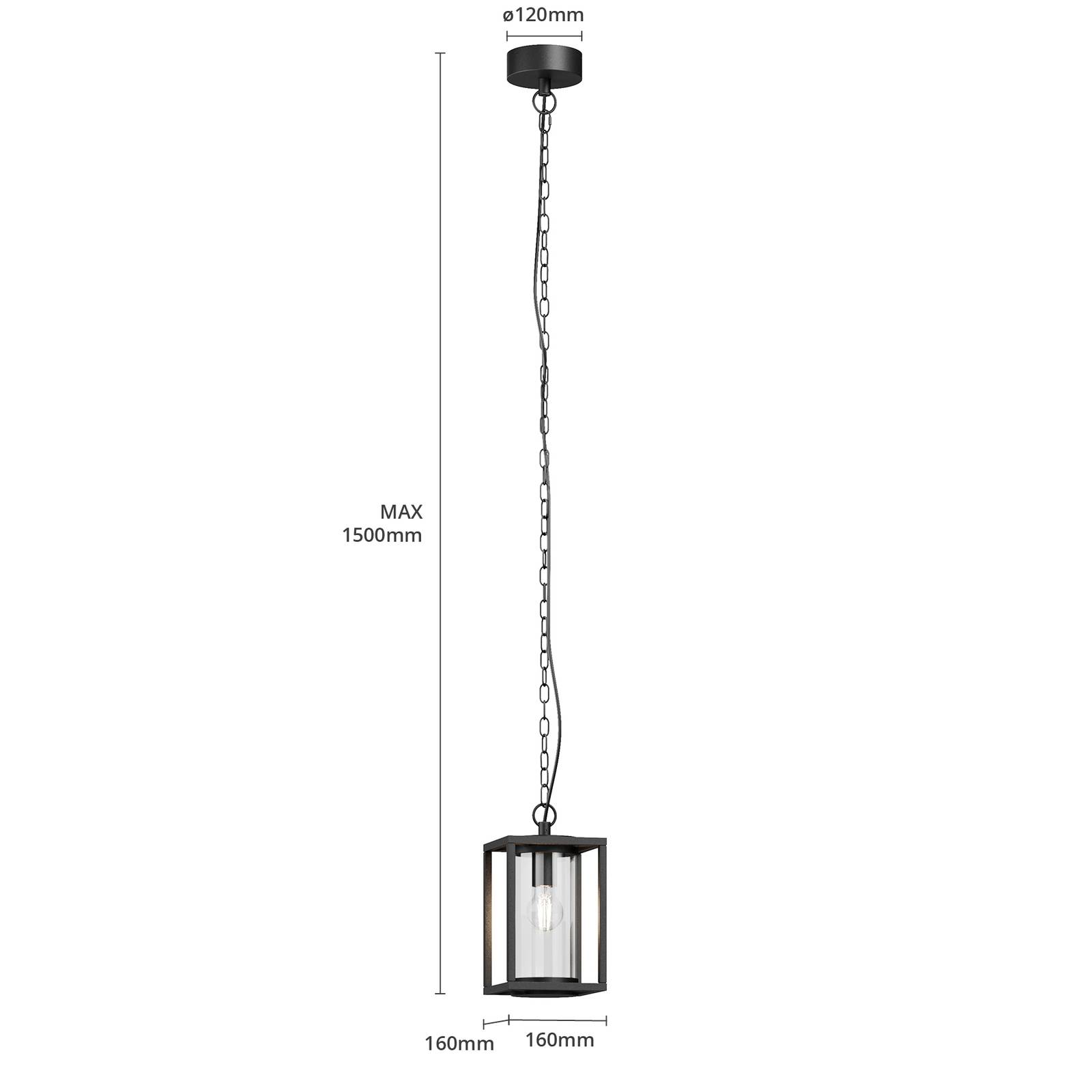Ferda - lampada a sospensione da esterni Ferda è una moderna lampada a sospensione per esterni, costruita in alluminio grigio scuro. Per il funzionamento si usa una lampadina E27 da scegliere liberamente. La sorgente luminosa rimane chiusa in un cilindro di vetro trasparente che la protegge dagli agenti atmosferici. L'illuminazione si diffonde tutto intorno con un effetto vivace. La lampada diffonde una luce bianca di piacevole tonalità calda che sa fare atmosfera. Ferda è una lampada ideale da appendere in terrazza, in una veranda o in altre zone coperte da tettoie.